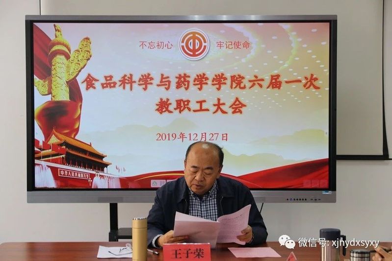 学院党委副书记、院长王子荣代表学院党委做2019年党政工作总结、2020年工作要点、学院2019年收支情况汇报,同时传达了学校2020年的党政工作思路。