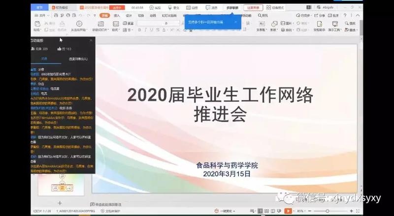 参加此次线上招聘会的人员有:学院党委副书记、纪委书记李莉、教学副院长杨晓君、教学办副主任陈铮、学工办冯思豫、毕业班班主任以及全体在校毕业生。推进会利用钉钉直播平台开展。
