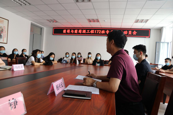 了更好的完成2021届本科毕业生相关工作,按照2017级葡萄与葡萄酒工程专业培养方案安排,2020年7月10日下午16:00,在学院六楼会议室召开了葡工172班专业实习暨毕业实习动员会,并计划于2020年7月至12月开展实习相关工作。学院党委书记卡叶尔博力·沙丁,教学副院长杨晓君,葡萄与葡萄酒工程专业负责任人杨兴元,学工办辅导员冯思豫、教学办副主任、葡工172班班主任陈铮及葡工172班全体同学参加了此次动员会,会议由葡萄与葡萄酒工程专业负责任人杨兴元主持。