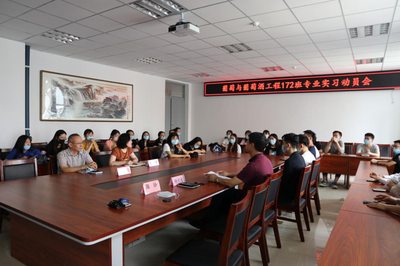 了更好的完成2021届本科毕业生相关工作,按照2017级葡萄与葡萄酒工程专业培养方案安排,2020年7月10日下午16:00,在学院六楼会议室召开了葡工172班专业实习暨毕业实习动员会,并计划于2020年7月至12月开展实习相关工作。学院党委书记卡叶尔博力·沙丁教学副院长杨晓君葡萄与葡萄酒工程专业负责任人杨兴元,学工办辅导员冯思豫、教学办副主任、葡工172班班主任陈铮及葡工172班全体同学参加了此次动员会,会议由葡萄与葡萄酒工程专业负责任人杨兴元主持