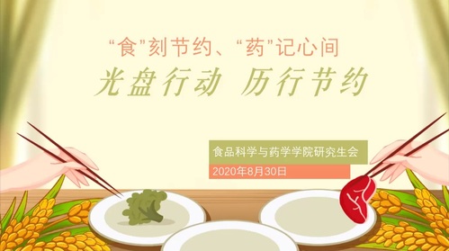 为了响应习近平总书记的号召,倡导节约之风,杜绝“舌尖上的浪费”,8月30日,学院通过钉钉会议方式组织全体研究生开展了以“食刻节约,药记心间”为主题的班会。