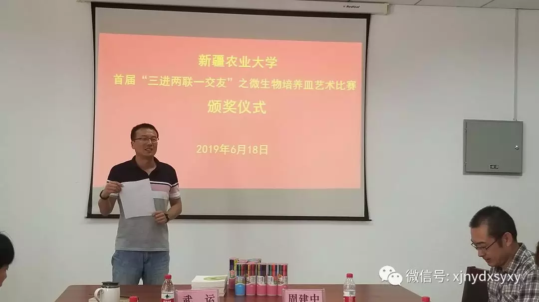 6月18日首届“三进两联一交友”之微生物培养皿艺术比赛经过长达半个月的角逐终于迎来了比赛评审阶段,参加评审的评委老师有:杨晓君、顾爱星(农学院副院长)、杨海燕、武运、李焕荣、朱璇、逄焕明、韩海霞、周建中、陶永霞、夏俊芳、邓杰、教学办陈铮,以及院纪委委员艾克拜尔·买买提。
