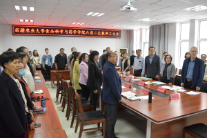 “起来!不愿做奴隶的人们!把我们的血肉,筑成我们新的长城…”嘹亮的国歌声在工科楼615会议室响起,4月23日,艳情小说 六届二次教职工大会在此召开。会议由学院叶尔博力·沙丁同志主持,学院党政领导班子及全体教职工参与了此次会议。