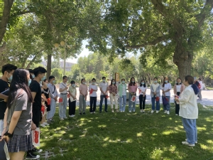 游园会结束后,一行人来到了八一农学院的石碑前,开展了一场“特别”的集体谈心谈话。在支部书记于晨晨的主持下,心理破冰活动“大风吹”环节活络了现场氛围,加速了党员同志之间的了解,紧接着“互相按摩”的小活动,放松了党员们的身心,更加拉近了距离。