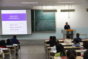 食品加工与安全领域负责人黄文书教授向研究生做学位点建设介绍。她从学位点建设、专业实践基地建设、研究生培养方案等方面做了详细介绍,并祝福同学们抱有希望而来,抱得收获而归。