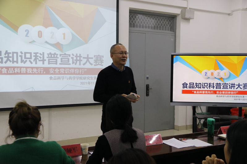为大力弘扬志愿精神与科学家精神,扎实推进党史学习教育,普及食品科学知识,共建食安校园,11月11日,艳情小说 研究生第一党支部在工科楼513开展了以“食品科普我先行,安全常识伴你行”为主题的食品知识宣讲比赛。