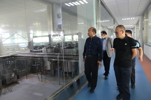 在童刚平副总经理的带领下,学院一行4人还参观了西域春乳业酸奶、牛奶全自动化生产线、实验室,研究生配套办公室等。