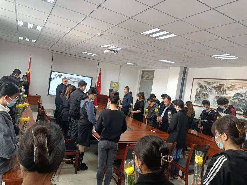追思会后,学院师生在院党委书记叶尔博力·沙丁的带领下,排队将手中的菊花敬献在张鹏墓碑的照片下,为铭记,更为致敬。