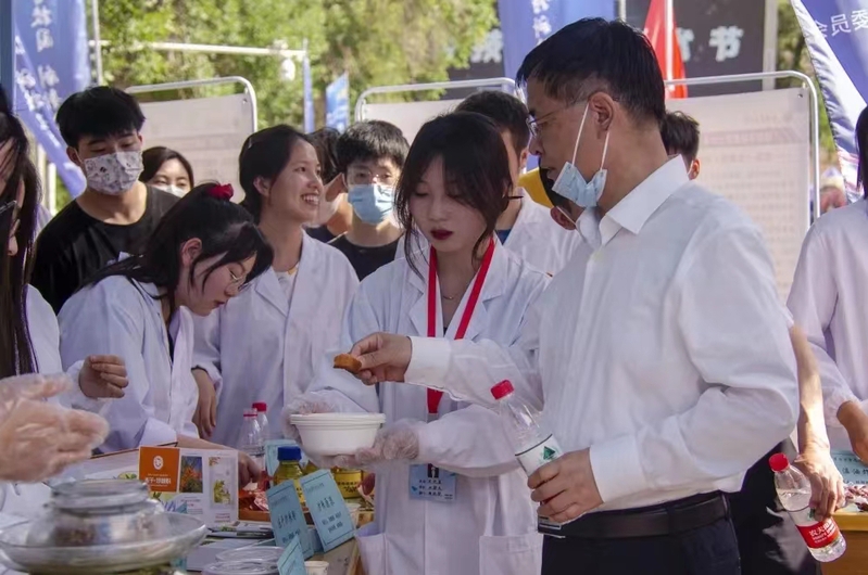 活动期间校领导和老师们来到我院科技文化艺术作品区参观,讲解员从食品制作材料到制作流程等方面详细地进行了介绍。