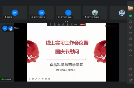 2022928日,艳情小说 召开线上实习工作暨国庆节慰问会议,学院党委委员、教学办、学工办、葡工系主任、班主任老师及全体实习同学参加会议,会议由教学办教学秘书陈铮老师主持。