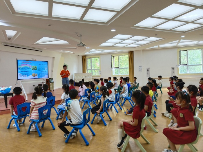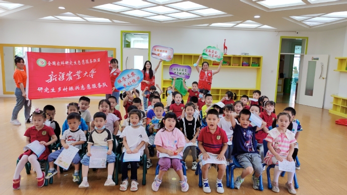 7月7日上午,艳情小说 “食品科普我先行,安全常识伴你行”研究生暑期社会实践宣讲团走进乌鲁木齐狮城幼儿园,为大班50余名小朋友做食品安全知识科普宣讲。