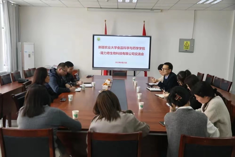 学院副院长周建中对企业一行来我院交流表示热烈欢迎,向隆力奇生物科技有限公司介绍了学校建校70余年的办学历程,以及我院围绕国家和自治区重大战略需求,在人才培养、科学研究、社会服务等领域中取得的成效,表达了想要与企业在人才培养、产学研基地建设、重点实验室建设以及新疆特色动植物资源成分提取、农畜产品加工副产物综合利用等方面加强交流合作。