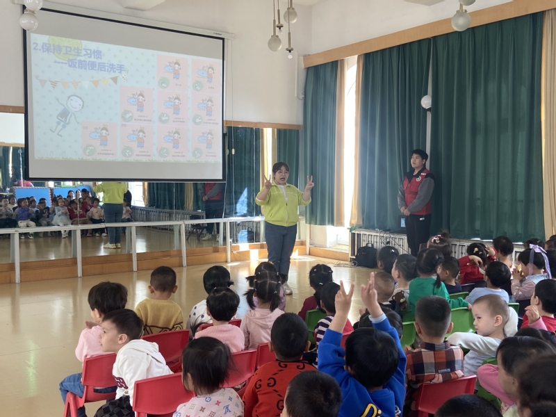 宣讲员于晨晨介绍了“食品营养知识”“如何保持健康的饮食习惯”“海姆立克急救法”等知识,通过播放短视频、学唱洗手儿歌的方式,生动的向小朋友们强调了保持良好的卫生习惯对健康成长的重要性,现场气氛热烈,小朋友们积极参与问答和互动,更大程度的巩固学习了“什么是‘三无产品’‘过期食品’”,增强了食品安全意识,提高了自我保护能力。