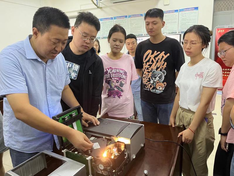 最后,陈恺老师为同学们演示了紫外分光光度计的结构与基本操作,王工程师现场为同学们示范了仪器的维护、保养,强调使用时易出现的不当操作,并邀请同学进行现场演练,接着模拟进行故障排查与保养操作,并向感兴趣的老师及同学介绍了公司最新研发的几款仪器,让师生切身感受了科技创新的力量。培训会现场讨论热烈,学术氛围浓厚,同学们纷纷表示将理论与实际操作相结合后,对该仪器的认识了解更加立体、全面了。