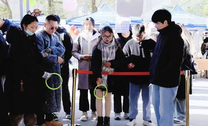 除了套圈活动本身,现场还有许多观战的学生,他们也在为参赛者加油打气,分享着快乐和欢笑。整个活动现场热闹非凡,充满了欢声笑语。大家在轻松愉快的氛围中释放压力,享受校园生活的乐趣。
