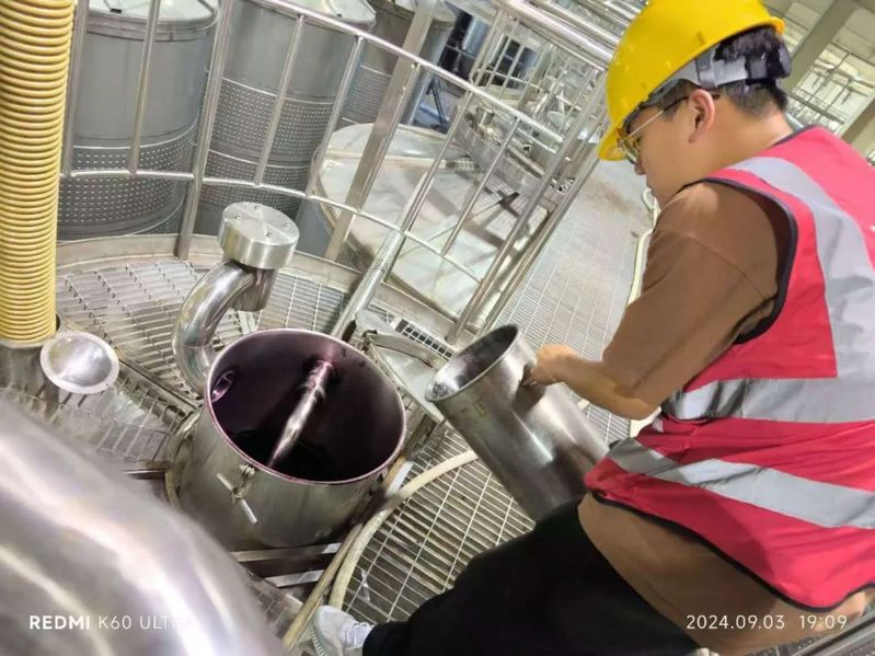 8月29日,同学们正式上岗工作。负责中控台的申佳隆同学说:“我的工作职责是掌握除梗破碎机的操控,是气囊压榨的前序准备,同时与验糖岗位的同学合作,确保酿酒葡萄正常入罐。”