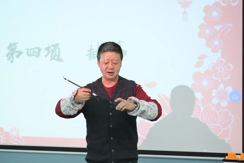 随后,郑灿龙老师登台,为大家带来了关于书法艺术的精彩讲解。他剖析了书法中的注意事项,追溯了书法的历史渊源,并揭示了其中蕴含的文化底蕴。郑老师的讲解深入浅出,引人入胜,让在场的师生们对书法艺术有了更加深入的了解和认识。