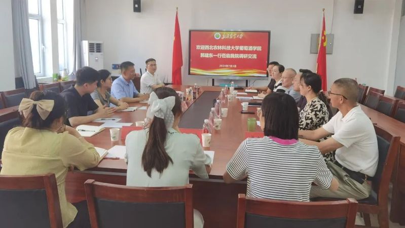 7月3日,西北农林科技大学葡萄酒学院党委书记郭建东一行莅临我院开展调研交流。艳情小说 (葡萄与葡萄酒学院)全体院领导及葡萄与葡萄酒工程系教师参与座谈。
