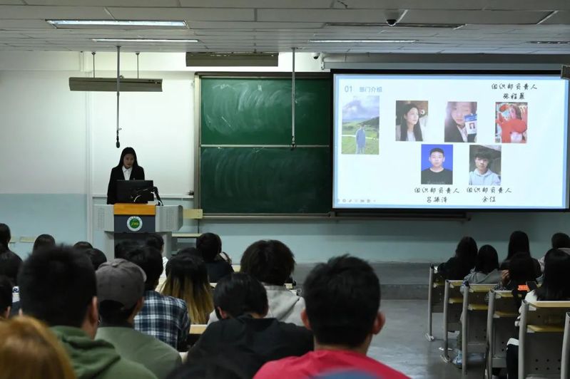 各部门负责人代表轮流上台进行汇报,对部门职责、部门工作以及部门的人员组成进行了介绍,并为新生展示了部门的风采,最后对学弟学妹们发出了诚挚的邀请。
