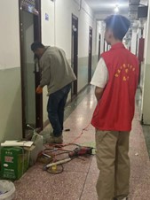 有同学反映宿舍门框老化,进门的时候轰轰隆隆,声势浩大,这可太影响咱们休息啦!不用担心,我们雷厉风行,通知了宿管叔叔和维修工人。他们很快就会来宿舍为我们修理门框,守护住我们“宿舍的门面”,我们可以安心地迈入宿舍的大门啦。