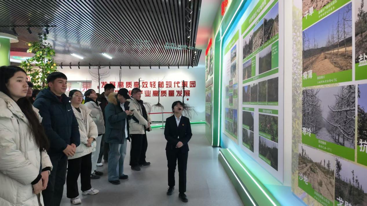 今日研学目的地聚焦阿克苏,首站走进天山神木果业。同学们实地探访了阿克苏苹果的全产业链,从种植源头到深加工环节,亲眼见证新鲜的“冰糖心”苹果如何通过现代化技术,变身苹果脆片、苹果汁等多样产品。生产车间里,自动化清洗、分选、包装生产线直观展现了食品工业的高效与精准,公司经理还耐心解答了果品保鲜、营养保留等专业问题,让课堂理论与企业实践实现深度衔接。