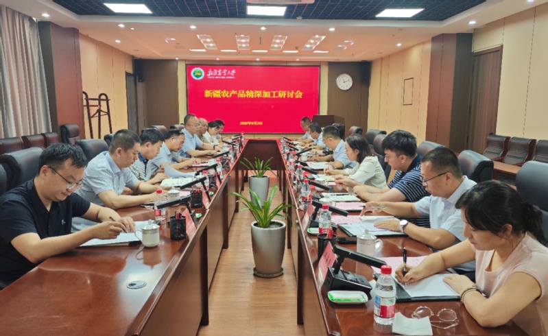2025年8月3日上午,由新疆农业大学食品科学与药学学院(葡萄与葡萄酒学院)牵头组织的新疆农产品精深加工研讨会在新疆农业大学举行。中国工程院院士、江南大学原副校长、教育部食品科学与工程教学指导委员会主任委员、中国食品科学技术学会副理事长金征宇,自治区粮食和物资储备局党委委员、副局长曲贵强,自治区农业农村厅二级巡视员狄永江,自治区粮科所(质检站)所长潘兵,自治区科技厅农村科技处二级调研员王飞及校内外专家学者等参会,会议由新疆农业大学党委副书记陈勇主持。陈勇对金征宇院士一行及各厅局部门来校指导工作表示欢迎,并介绍了学校的基本情况和办学特色,曲贵强介绍了新疆粮油产业现状,狄永江介绍了新疆农产品加工产业发展瓶颈,王飞详细解读了科技项目支持政策,工信厅轻工业行业管理处干部曹强全面介绍了新疆食品加工产业现状。金征宇院士基于实地调研与交流,针对新疆农产品精深加工领域的技术革新与产业升级提出战略建议:应以保障国家粮食安全及提升区域产业竞争力为核心目标,立足新疆特色资源禀赋,聚焦专业化与功能化作物育种体系建设以夯实优质原料基础,深化健康导向型可持续加工技术研发以突破高附加值产品制造瓶颈,系统挖掘特色资源