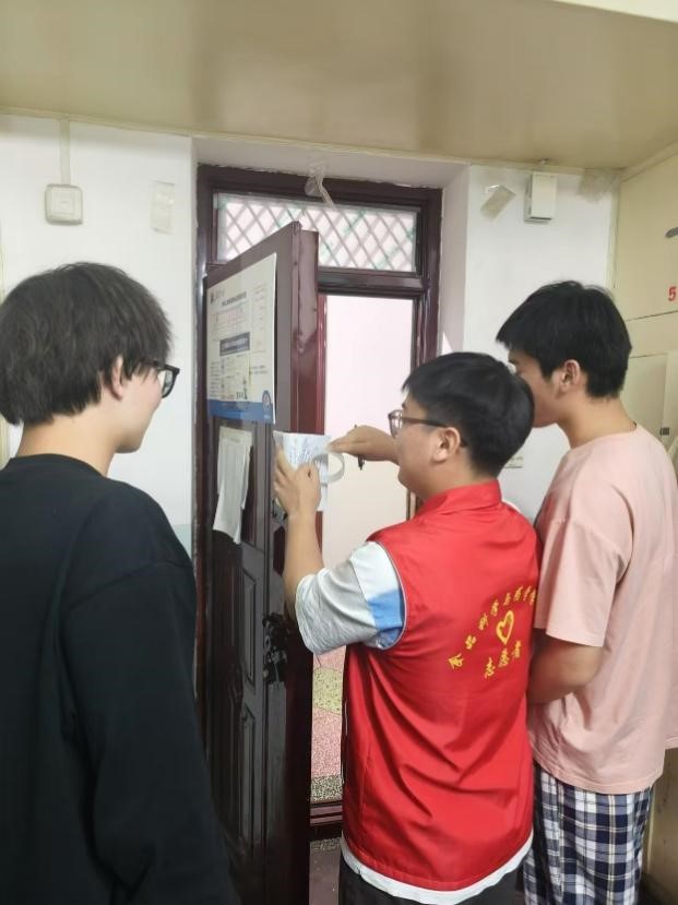 面对这一问题,我院学生会权益部志愿者展现出了他们的智慧和爱心。他们利用生活中的小常识,对松动的宿舍门进行了加固处理。通过他们的努力,宿舍门恢复了正常状态,为同学们重新营造了安静、温暖的睡眠环境,让大家可以在忙碌的学习之余,拥有高质量的睡眠。